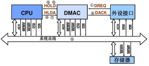 基本的输入输出方式,即主机与外设之间数据传送的控制方式有无条件传送、查询传送、中断传送和 DMA 传送四种。无条件传送往往只用于不需要数据准备的外设,软硬件结构简单;查询式传送用于对传送速率要求不高的场合,CPU 与外设交换数据前需要进行查询确认,软件设计简单。外设需要提供设备状态,接口需要提供状态端口。CPU 效率低,速度慢,实时性差。中断式传送只在需要进行数据传送时才中断 CPU 正在进行的工作,CPU 效率高,实时性好,程序相对复杂。前三种方式均需要 CPU 介入,程序的执行限定了传送的最大速度,IO 操作相对较慢。而 DMA 传送则无需 CPU 介入,CPU 暂时出让总线控制权,由专门的 DMA 控制器 DMAC 接管,用于高速大批量数据采集系统。
