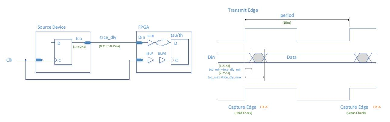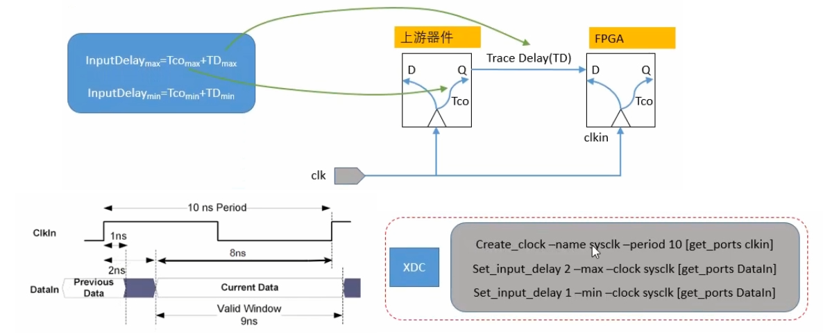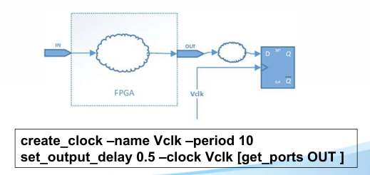 FPGA/ASIC 设计中的 IO 时序约束,核心是告诉综合 / 布局布线工具:外部芯片和 FPGA 之间的信号延迟有多少,工具要按这个来算建立 / 保持时间。