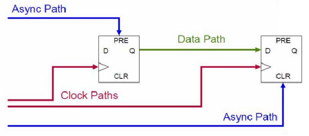 同步时钟的时序需要 STA 分析,异步时钟域的信号切换需要特殊处理,可以通过 set false path 消除异步时钟域的时序检查。