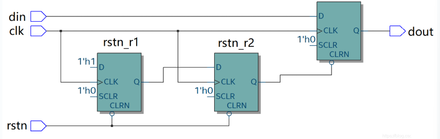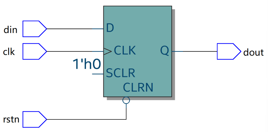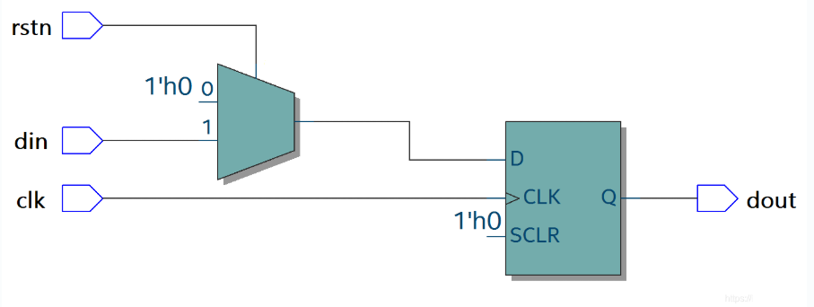 if(!rstn) dout <= 1'b0 ; //rstn 信号与时钟 clk 同步