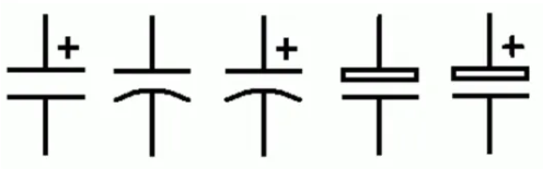 电容容值的标注方法与电阻完全相同,但但基本单位是 pF,如\(473=47\times10^3 \text{pF} = 47 \text{uF}\)。电容选型时最重要的就是注意区分极性电容和非极性电容。非极性电容可用于直流和交流电路,阻值相对较小,极性电容只能用于直流电路,阻值相对可以做到更大。钽电容和电解电容是极性电容,钽电容标识正极,电解电容标识负极;原理图中弯片为负极,空心为正极。电容选型时依次考虑功能、材质、容值、耐压值和温度系数。(温度系数描述了电容容值受温度的影响,单位为 ppm/℃,ppm 为百万分之一)